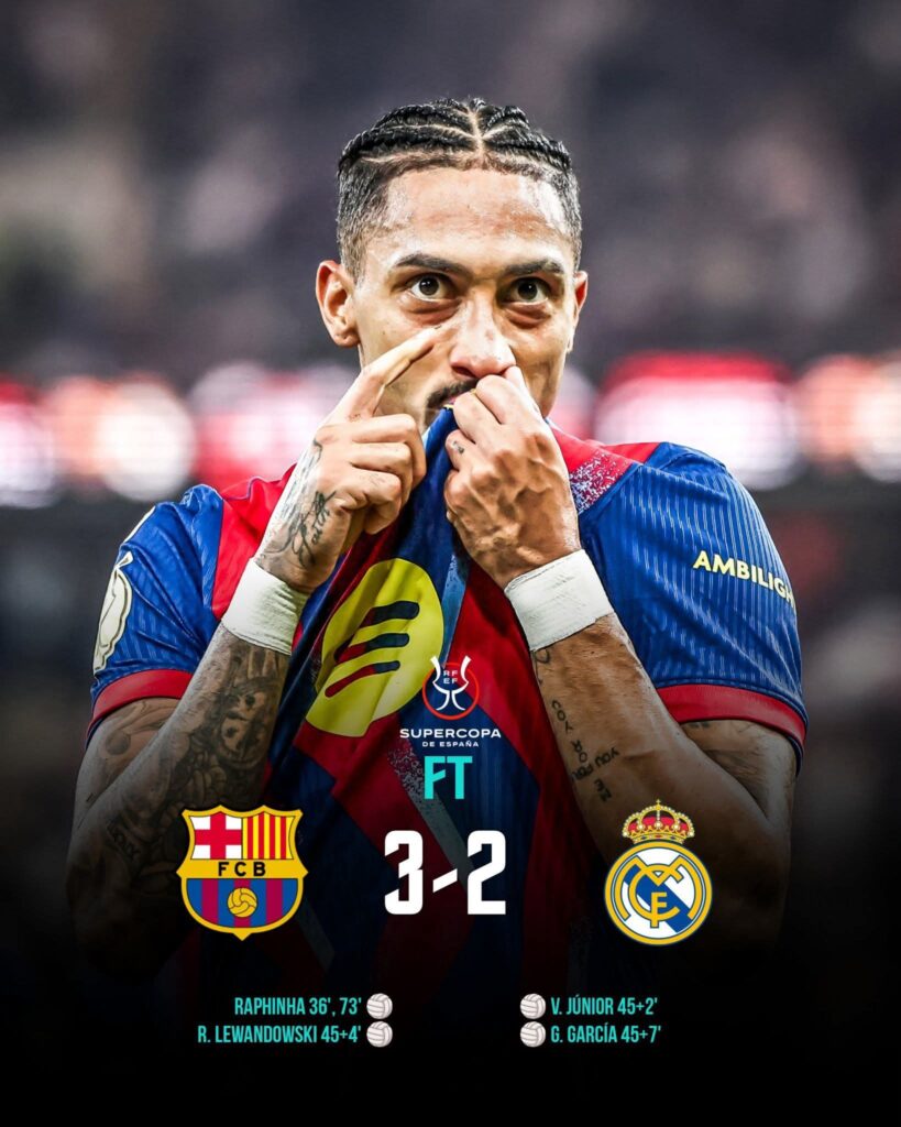Hay partidos que se ganan con táctica, otros con talento… y algunos, los más importantes, se ganan con el alma. La final de la Supercopa de España dejó uno de esos Clásicos que se quedan grabados en la memoria: Barcelona 3, Real Madrid 2. Un duelo vibrante, lleno de historia, tensión y ese orgullo que solo despierta el escudo.